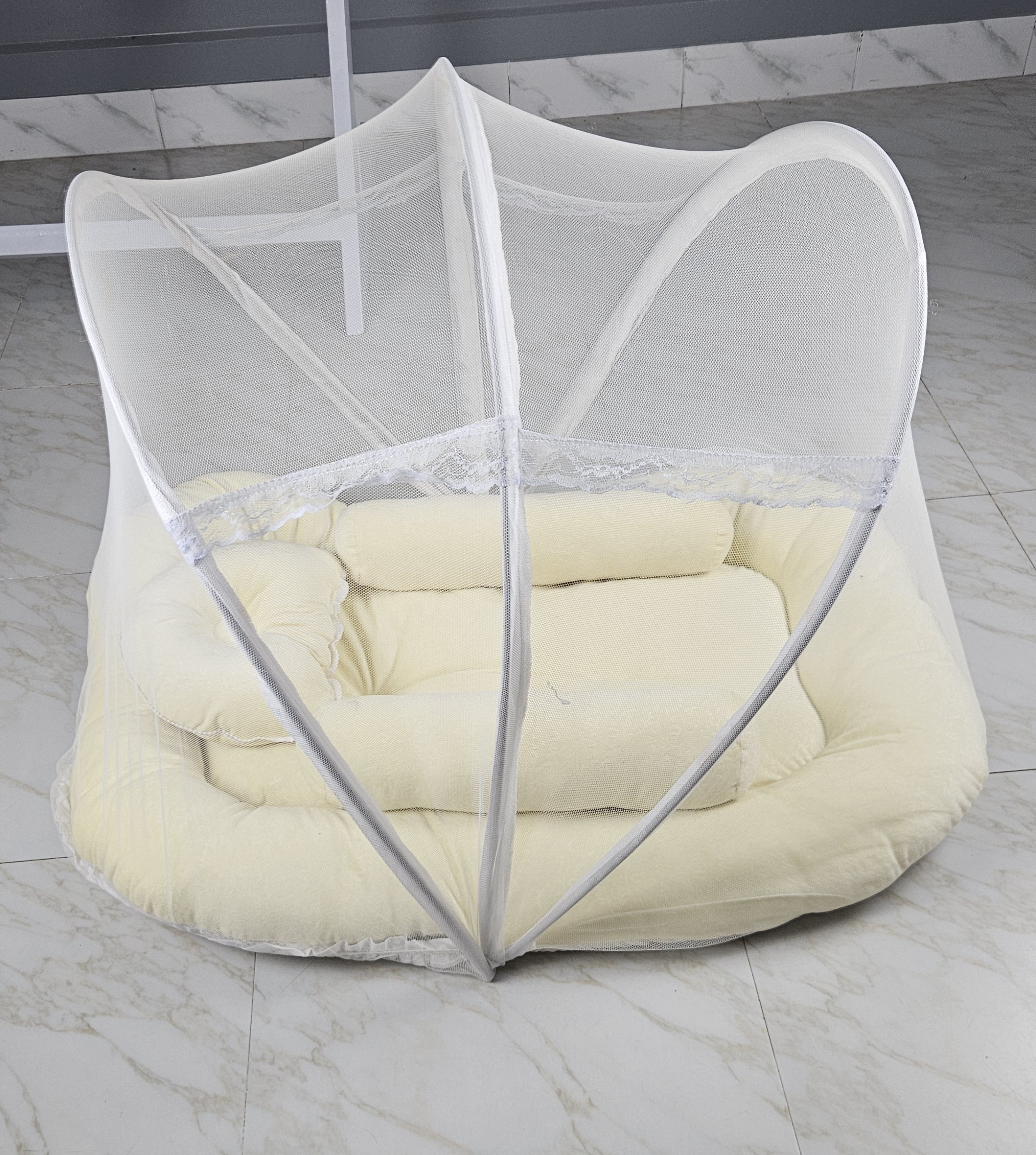 - Including 1 bed, 1 mosquito net, 1 head pillow and 2 side pillows •